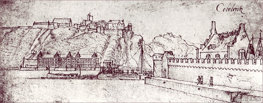 Das ist Kriegsberichterstattung vor 350 Jahren. Die Franzosen sind drüben in Ehrenbreitstein, sie sind zwar uneinnehmbar, aber eingeschlossen. Die Kaiserlichen sind hier in Koblenz. Für die Durchfahrt der englischen Delegation wurden die Kämpfe unterbrochen.